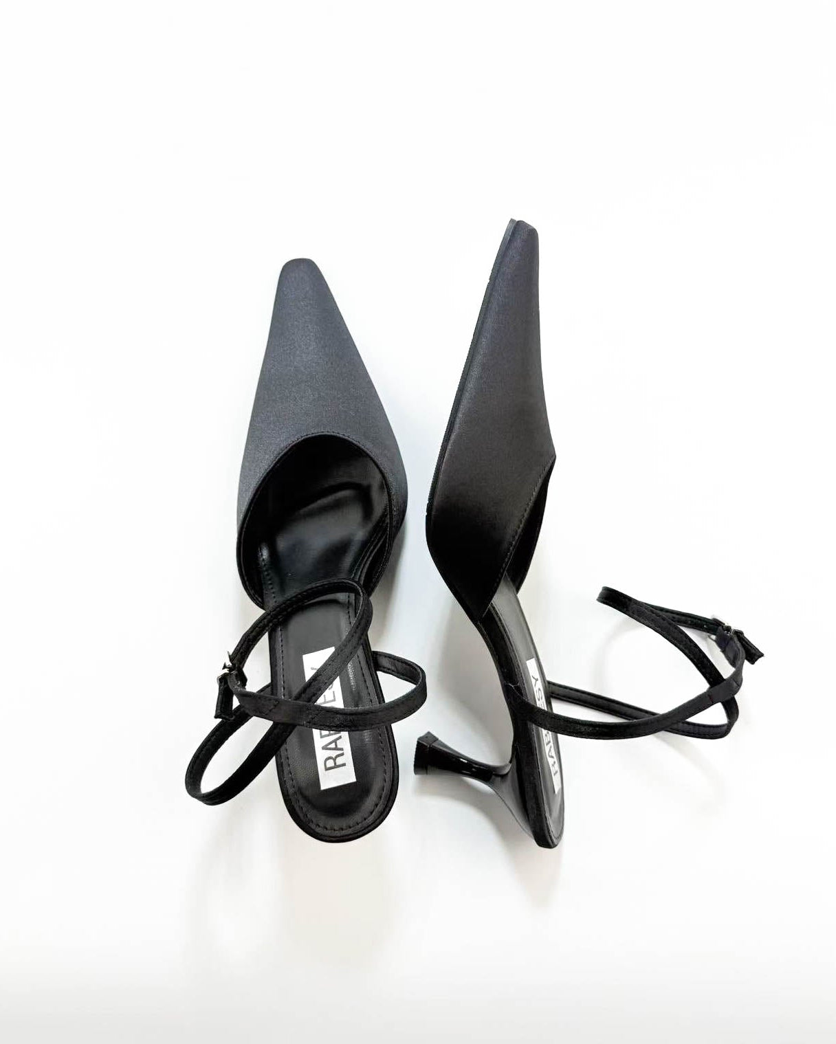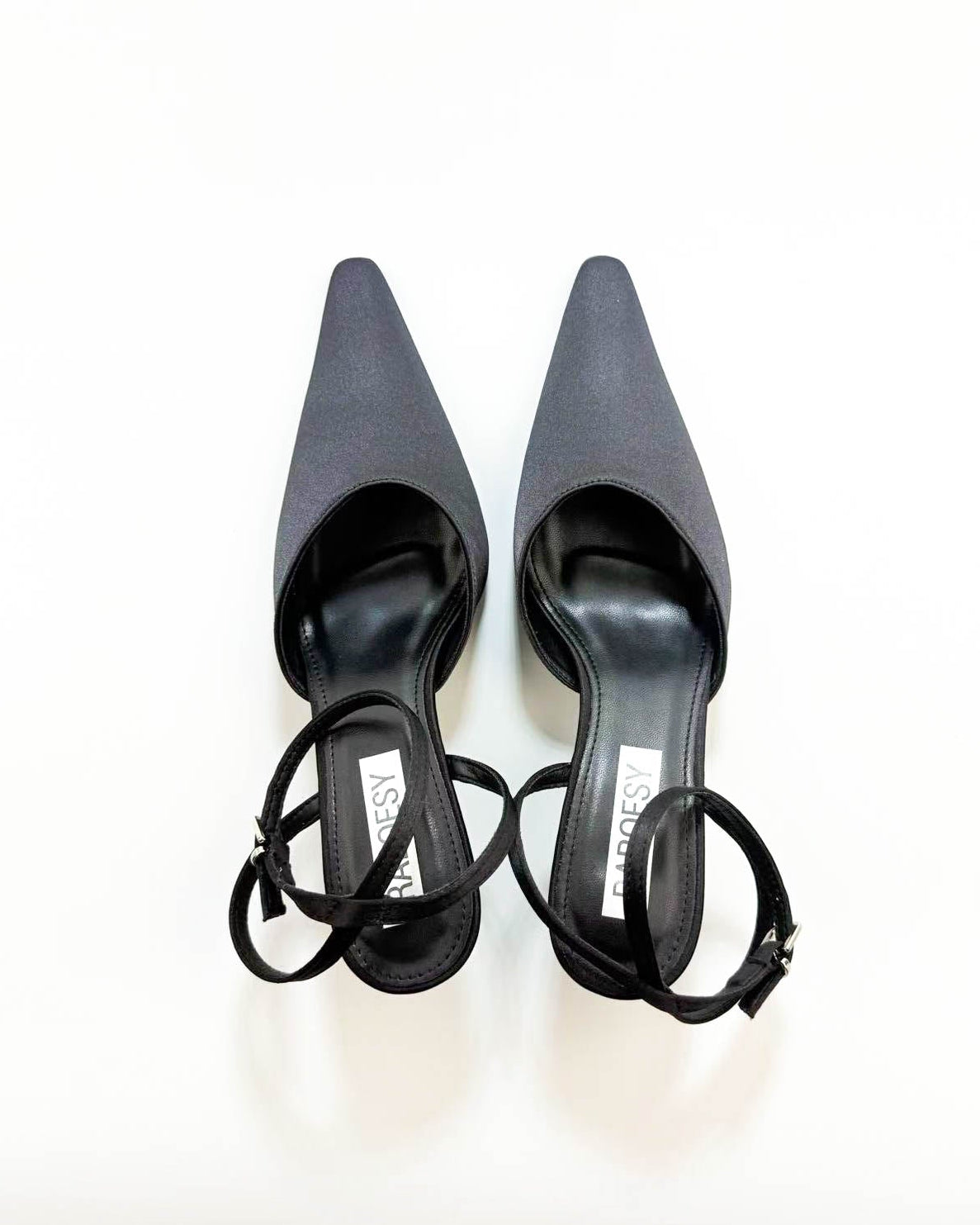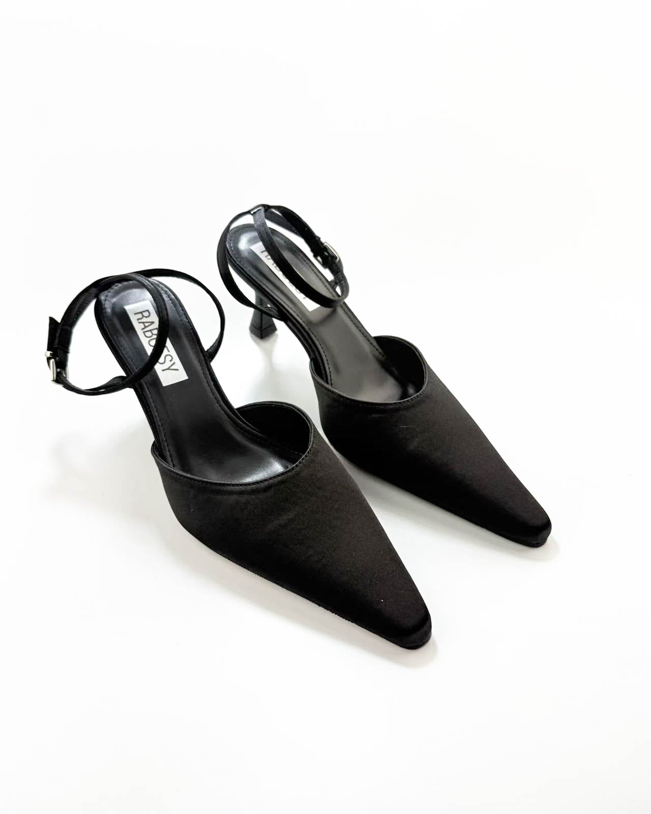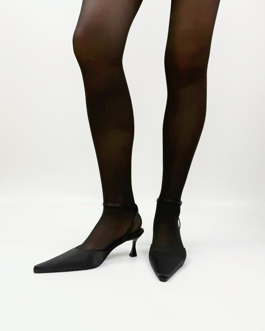 Satin Point Toe Ankle Strap Heel Pumps
