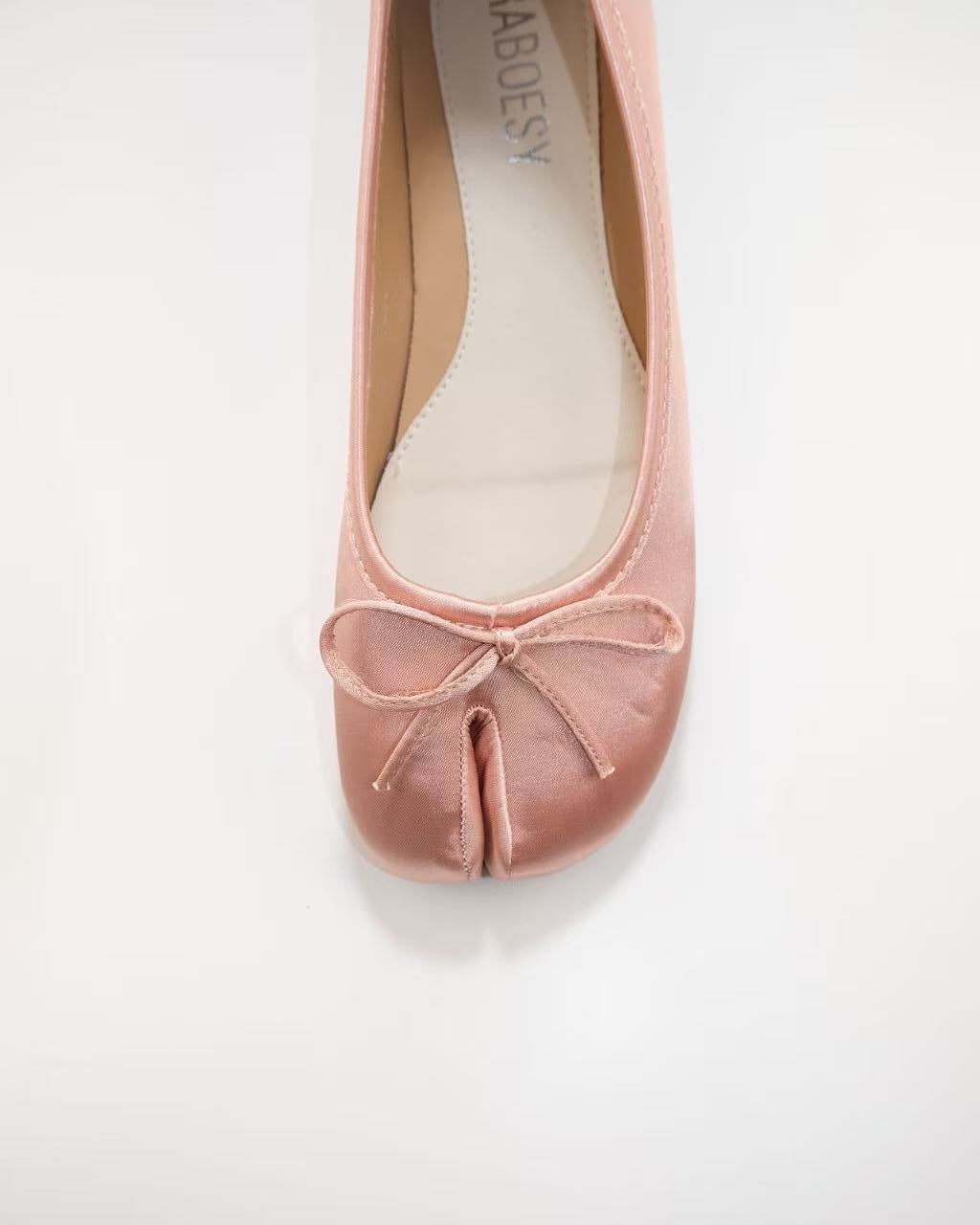 Satin Tie Bow Tabi Ballet Flats
